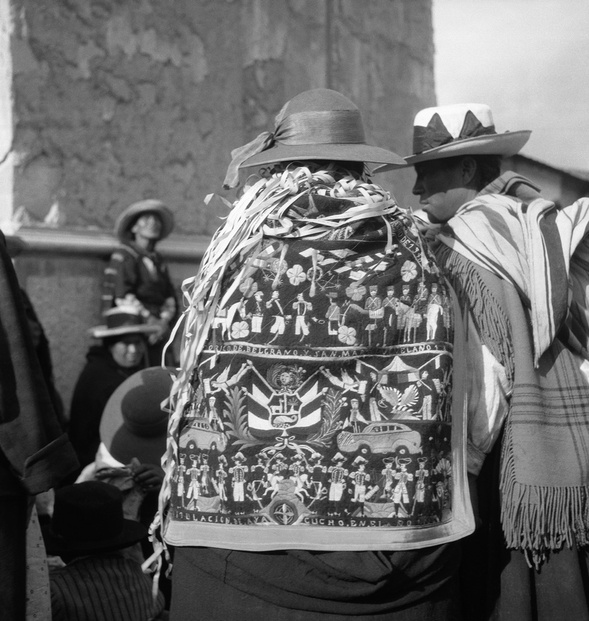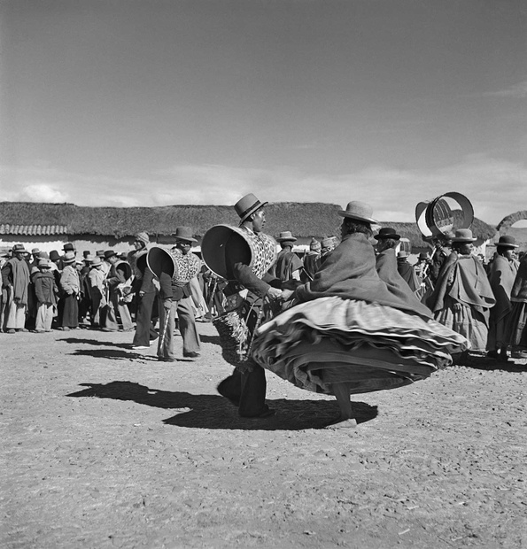 Published in 1945, Fiestas y Danzas situates Verger’s images of Andean fiestas within discourses and cultural politics of indigenismo, a modernist movement during the late-19th and 20th centuries intent on elevating marginalized “indigenous” peoples—the different groups of Quechua- and Aymara-speaking rural farmers and pastoralists—as the heart of progress and culture in the Andes. The equitable application of the movement’s ambitions was, however, constrained by entrenched attitudes and a racial hierarchy inherited from the colonial era. A key proponent of indigenismo, Peruvian historian Luis E. Valcárcel (1891–1987) wrote introductions to Fiestas y Danzas and Indians of Peru (1950), Verger’s subsequent book of photography. In Fiestas y Danzas, Valcárcel wrote: